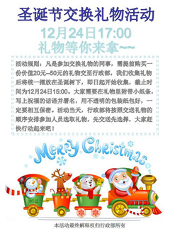 2015年12月24日公司舉辦圣誕節交換禮物活動,員工們把用心準備的禮物與滿滿的祝福精美包裝后放到圣誕樹下,互換禮物、互領心意,愿拆開禮物:新年新氣象,好時好心情!